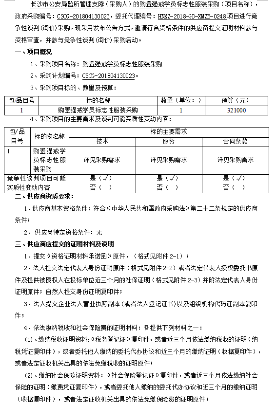 購置強戒學員標志性服裝采購競爭性談判邀請公告