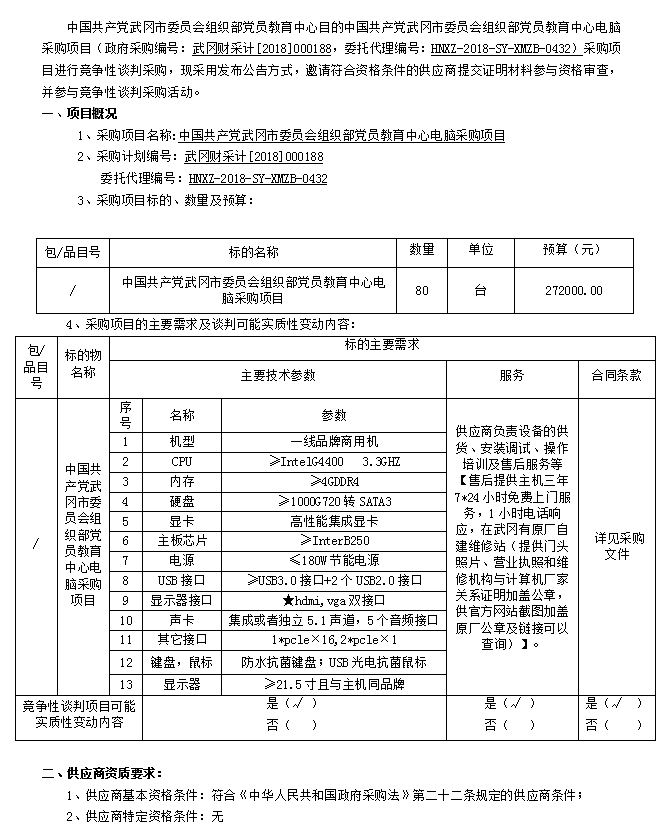 中國共產(chǎn)黨武岡市委員會組織部黨員教育中心電腦采購項目 競爭性談判邀請公告