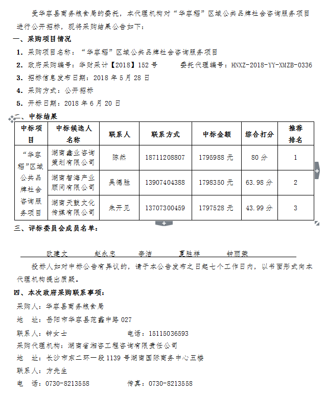 “華容稻”區域公共品牌社會咨詢服務項目公開招標中標公告