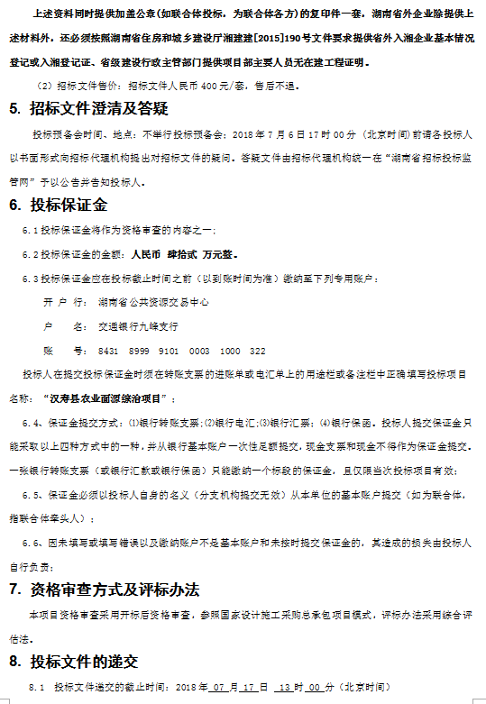 漢壽縣滄浪河流域農業面源污染綜合治理試點項目設計施工采購 (EPC)總承包招標公告