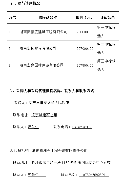 綏寧縣唐家坊鎮(zhèn)人民政府大門工程談判成交公告