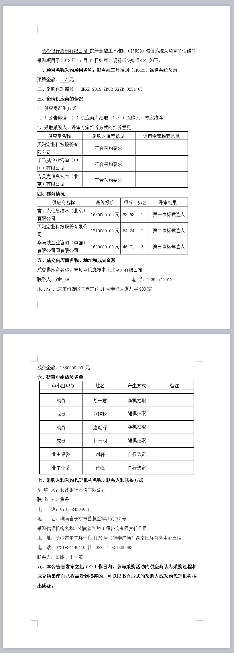 新金融工具準則(IFRS9)減值系統采購競爭性磋商成交公告