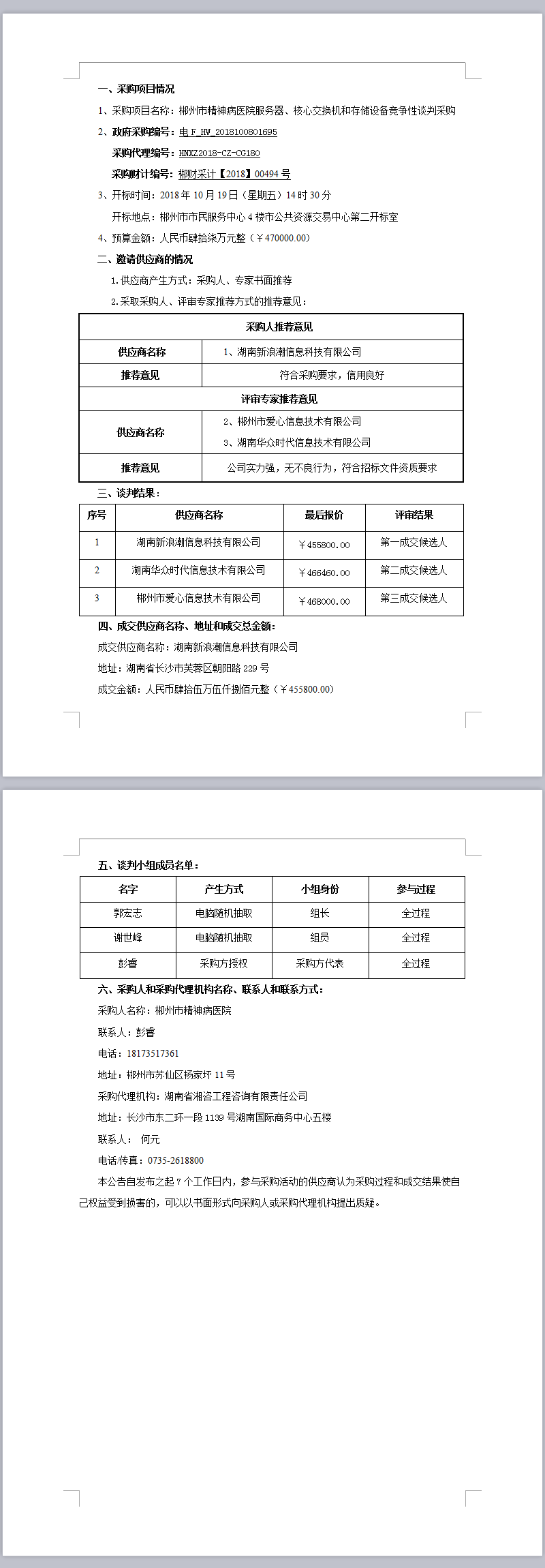 郴州市精神病醫院服務器、核心交換機和存儲設備競爭性談判采購成交公告