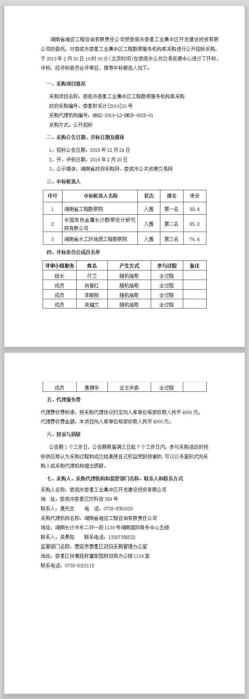婁底市婁星工業(yè)集中區(qū)工程勘察服務(wù)機構(gòu)庫采購公開招標中標公告