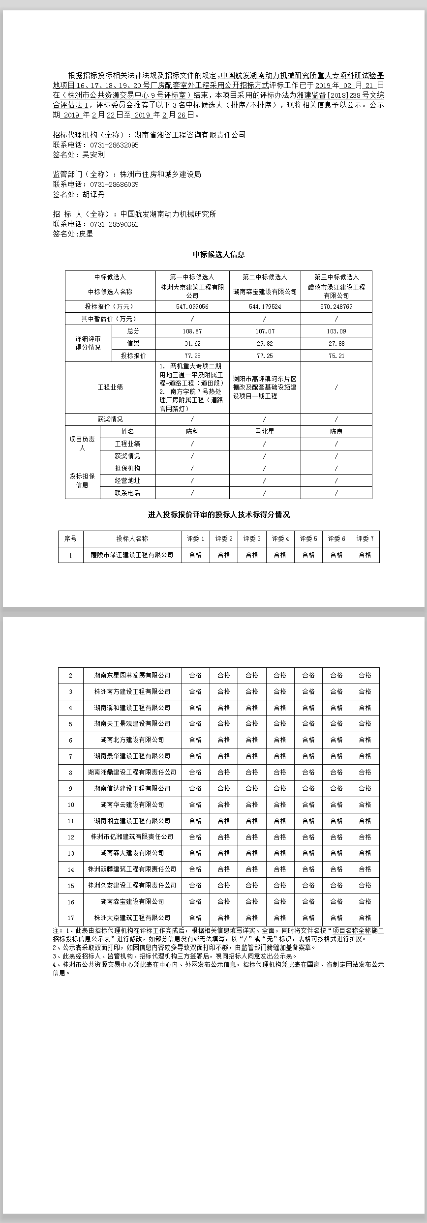 中國航發湖南動力機械研究所重大專項科研試驗基地項目16、17、18、19、20號廠房配套室外工程招標投標信息公示表