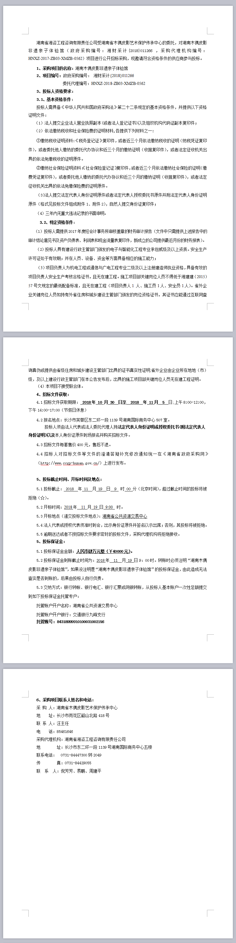 湖南木偶皮影非遺親子體驗館招標公告