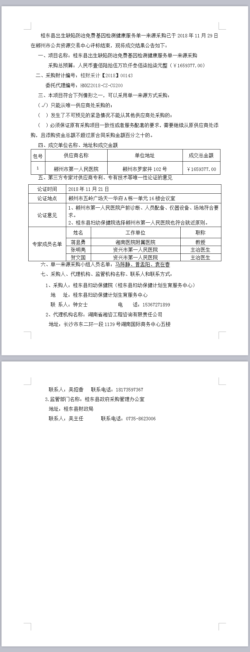 桂東縣出生缺陷防治免費基因檢測健康服務(wù)單一來源采購成交公告