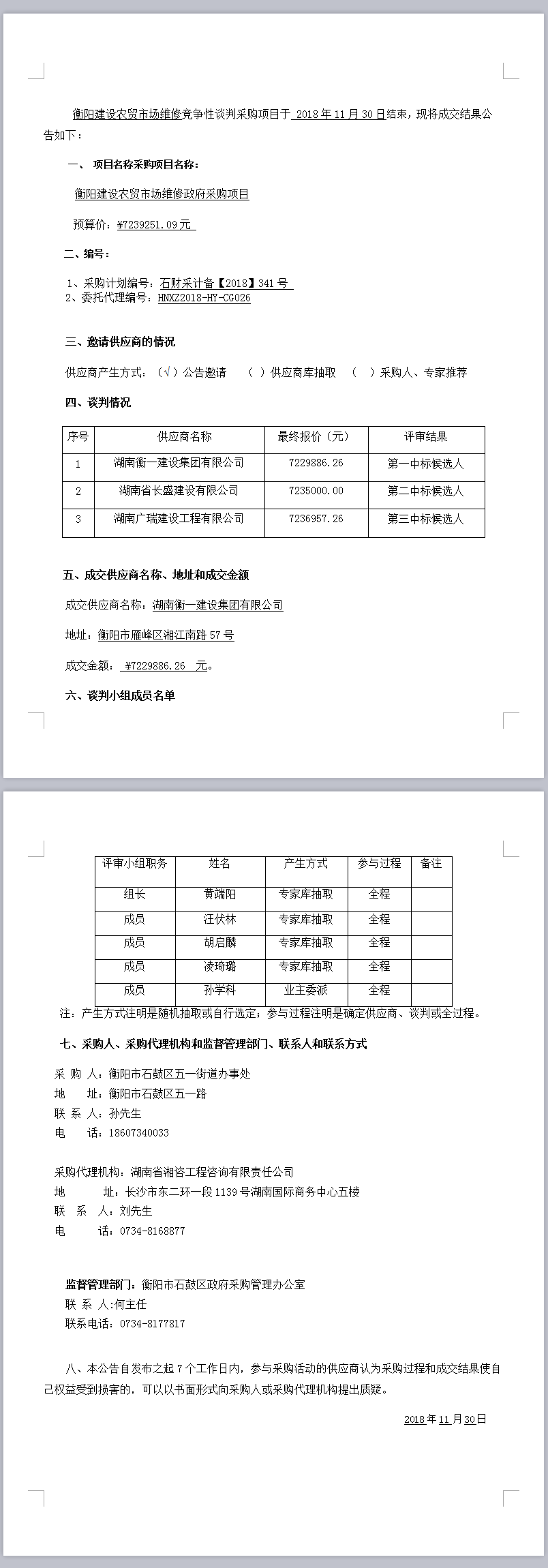 衡陽(yáng)建設(shè)農(nóng)貿(mào)市場(chǎng)維修政府采購(gòu)項(xiàng)目競(jìng)爭(zhēng)性談判成交結(jié)果公告