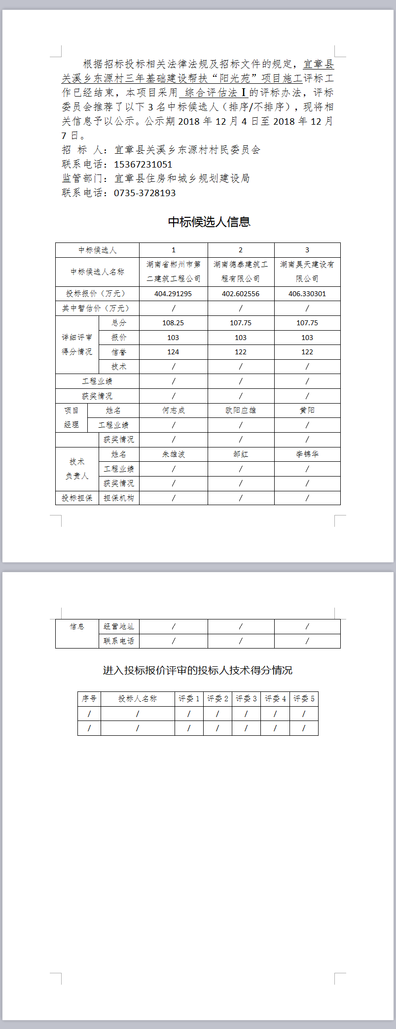 宜章縣關(guān)溪鄉(xiāng)東源村三年基礎(chǔ)建設(shè)幫扶“陽光苑”項(xiàng)目施工中標(biāo)候選人公示