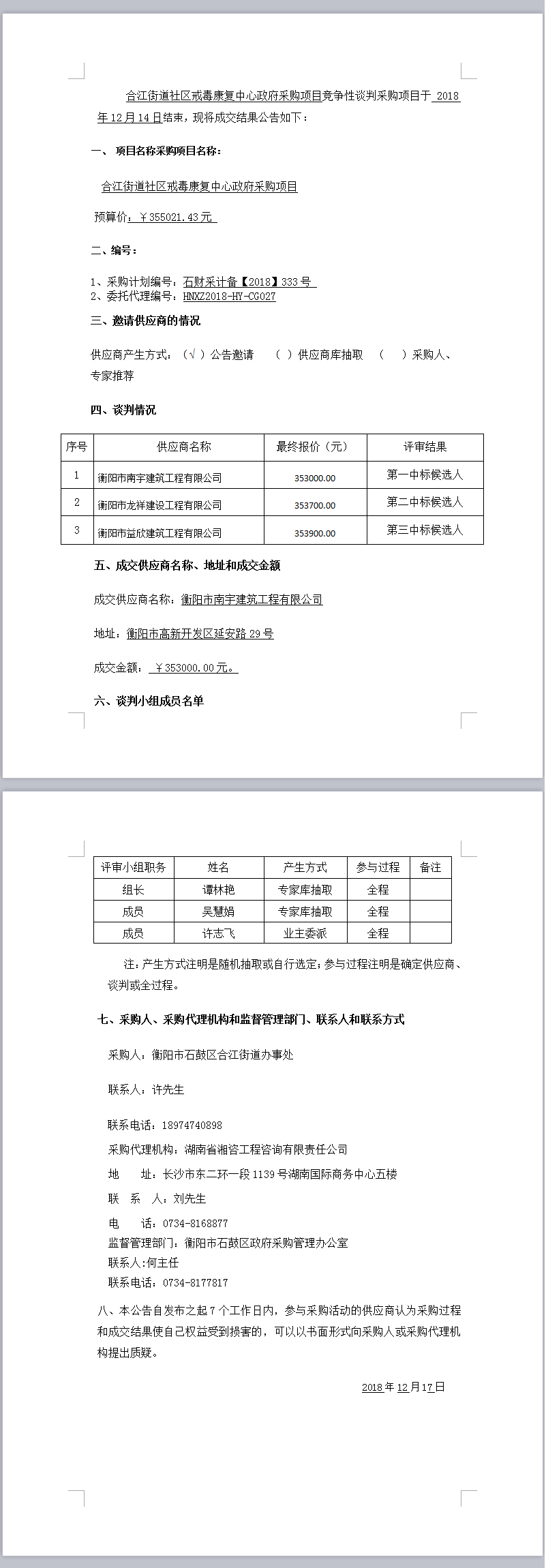 合江街道社區戒毒康復中心政府采購項目成交公告