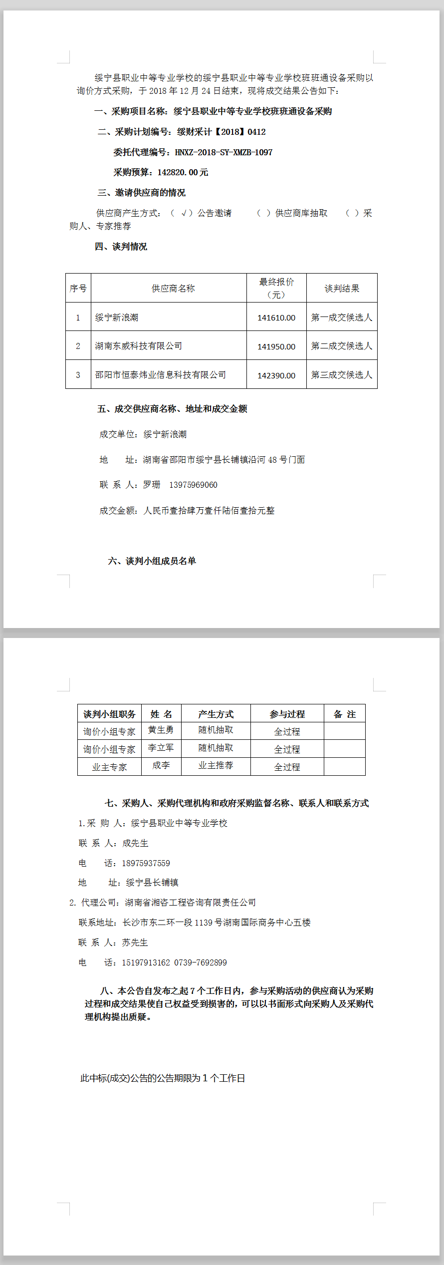 綏寧縣職業中等專業學校班班通設備采購成交公告