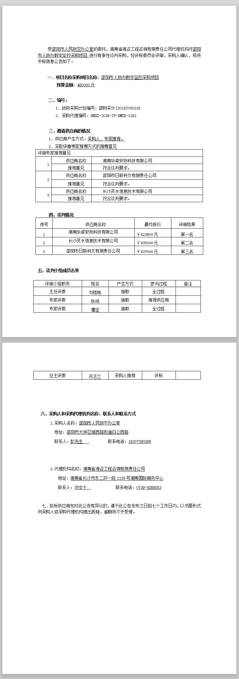 邵陽市人防辦數字監控采購項目競爭性談判成交公告