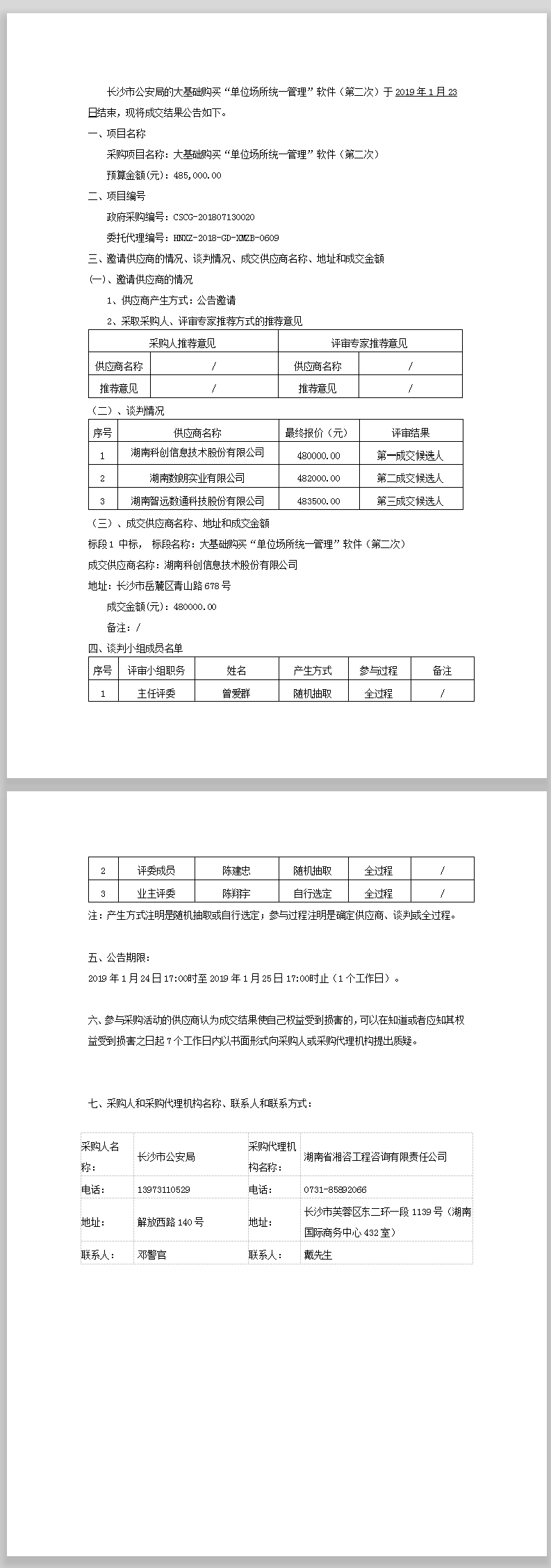 大基礎購買“單位場所統一管理”軟件(第二次) 結果公告