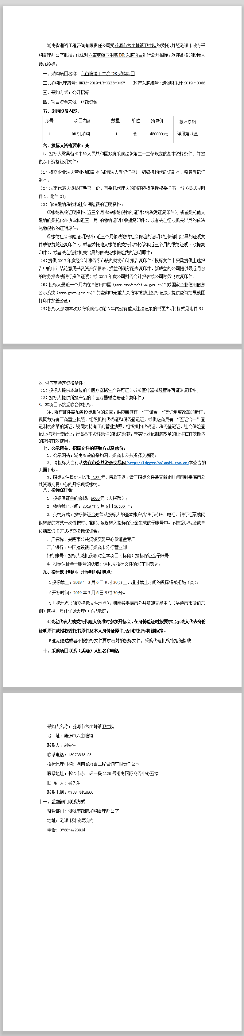 六畝塘鎮(zhèn)衛(wèi)生院DR采購項目招標公告