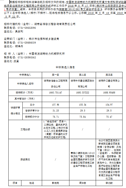 中國航發(fā)湖南動力機(jī)械研究所重大專項科研試驗(yàn)基地項目邊坡支護(hù)工程招標(biāo)投標(biāo)信息公示表